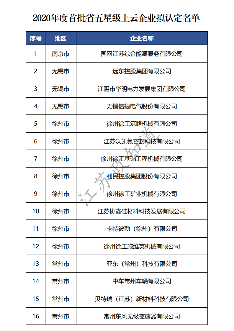 关于2020年度首批省星级上云企业拟认定名单公示